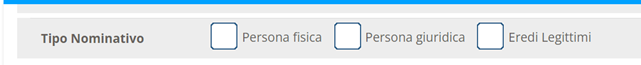 3. Selezionare il TIPO NOMINATIVO scegliendo tra PERSONA FISICA, PERSONA GIURIDICA, EREDI LEGITTIMI.