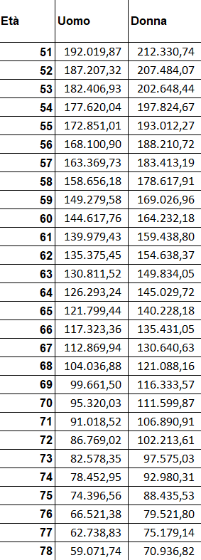 Questi dati sono determinanti per giungere alla trasformazione del montante in rendita vitalizia.