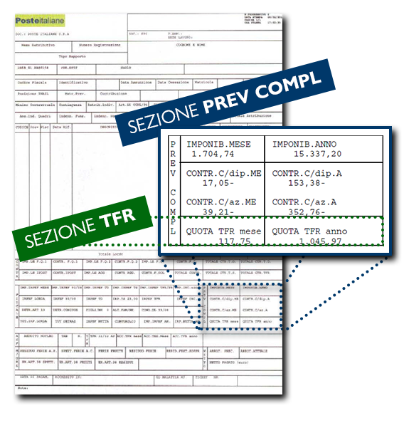 Nella sezione “PREV COMPL” sono riportati, a livello mensile e annuo, gli importi regolarmente versati a Fondoposte.